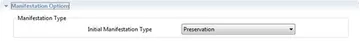 | -initManifType | Used to specify the type of manifestation created as part of the generated SIP. The manifestation ID should be specified. This can vary on an installation by installation basis but typically: 1) Preservation manifestation 2) Presentation manifestation 4) Container manifestation 5) Physical manifestation |